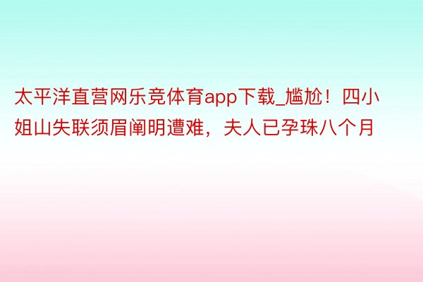 太平洋直营网乐竞体育app下载_尴尬!四小姐山失联须眉阐明遭难,夫人已孕珠八个月