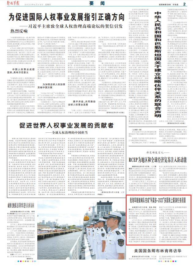 目田军报湛江6月14日电张淦、李虹明报谈:历时15个日夜,总航程3090余海里,6月14日上昼,赴印度尼西亚干预“科莫多-2023”多国海上相接演习的我舟师舰艇编队,在完成各项任务后,复返湛江某军港。