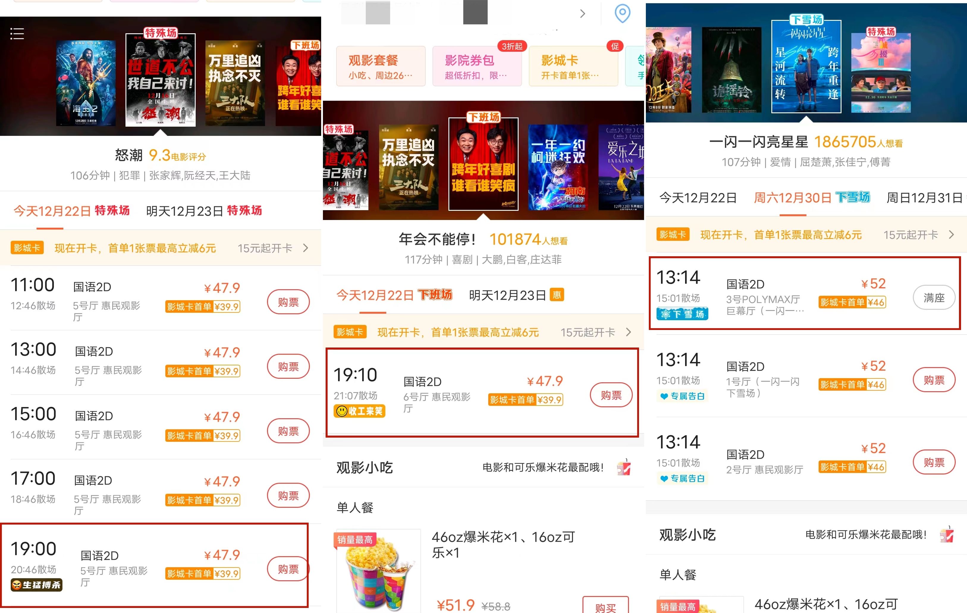 现时在售的部分特殊场。起首:猫眼App截图