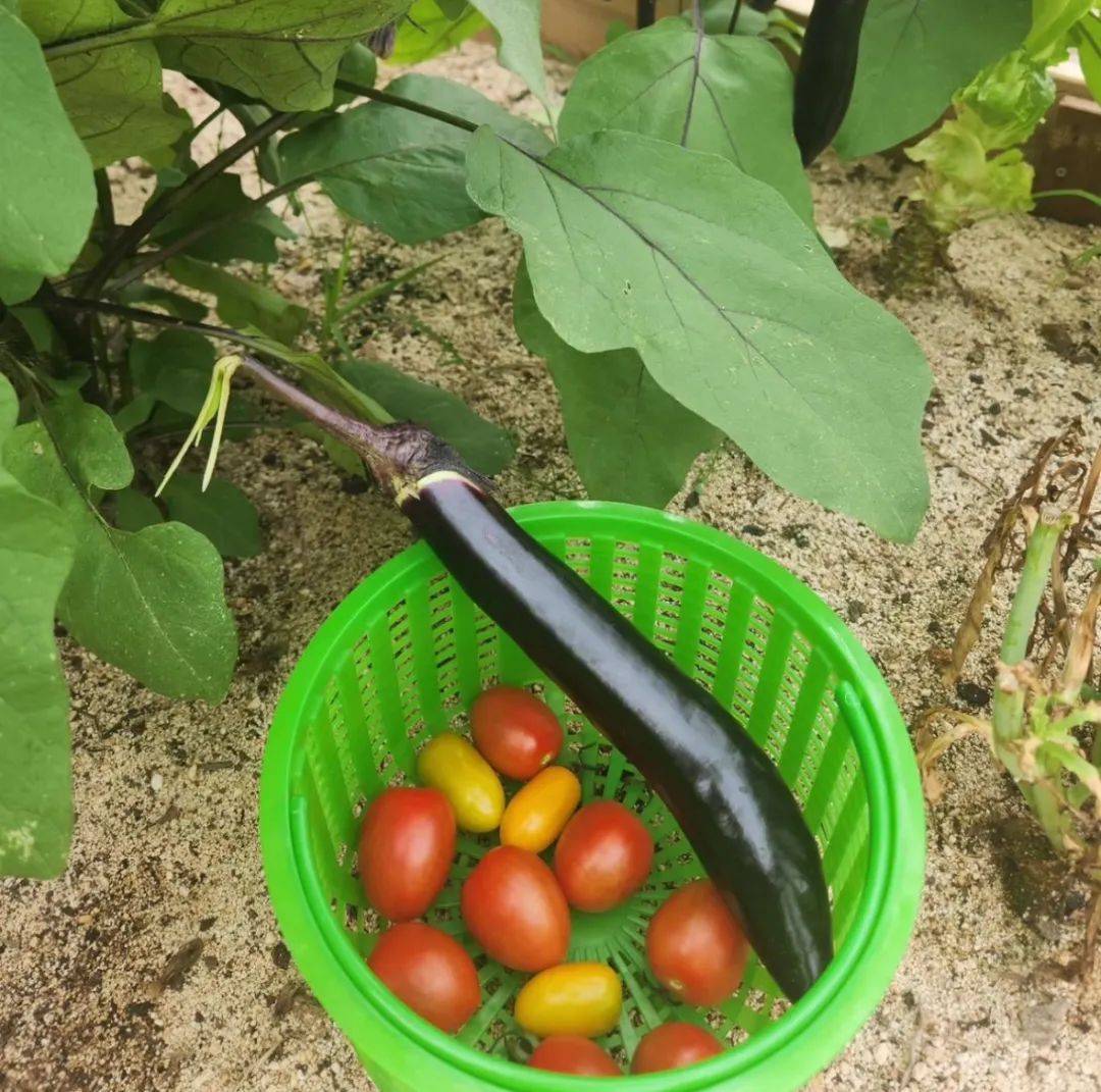 为了让孩子吃到自然的有机蔬菜,她在院子里开荒了一派很大的菜园,番茄、茄子、白菜、萝卜......三餐四季,都可自食其力。