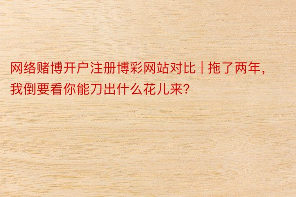 网络赌博开户注册博彩网站对比 | 拖了两年,我倒要看你能刀出什么花儿来?