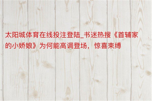 太阳城体育在线投注登陆_书迷热搜《首辅家的小娇娘》为何能高调登场,惊喜束缚